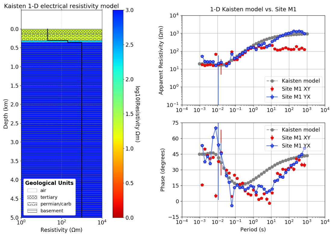 During a pilot survey we measured MT data at 14 sites at the Northern Swiss Heat Flow Anomaly. The survey showed that the MT data are affected by severe electromagnetic noise, that originates from power lines and the dense infrastructure in the region. The low signal-to-noise ratio required to develop advanced processing tools that allow in-depth statistical analyses in order to separate the natural signal from noise (resistics: Shah et al. 2021a in review). Nevertheless, the collected data show that they contain valuable information about the subsurface structure as can be seen in a comparison between the 1-D model derived from the Kaisten borehole and the MT response of a station near the well (Shah et al. 2021b in review).